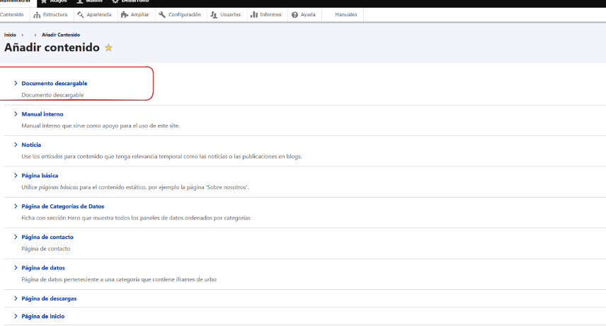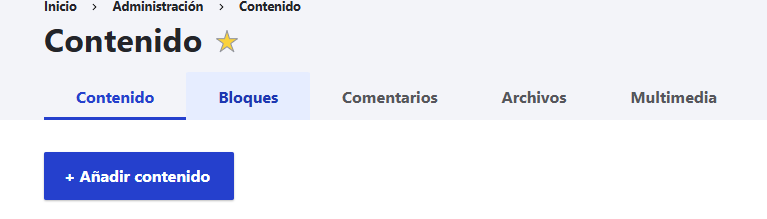 Iremos a "Contenido" en el menú superior. Y haremos click sobre Añadir contenido.