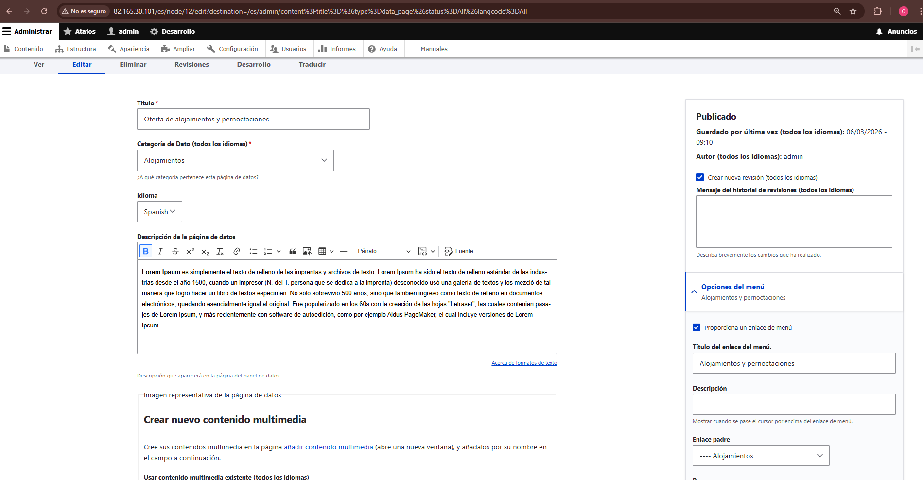 Se podrá apreciar en algún campo un bloque "Lorem Ipsum"